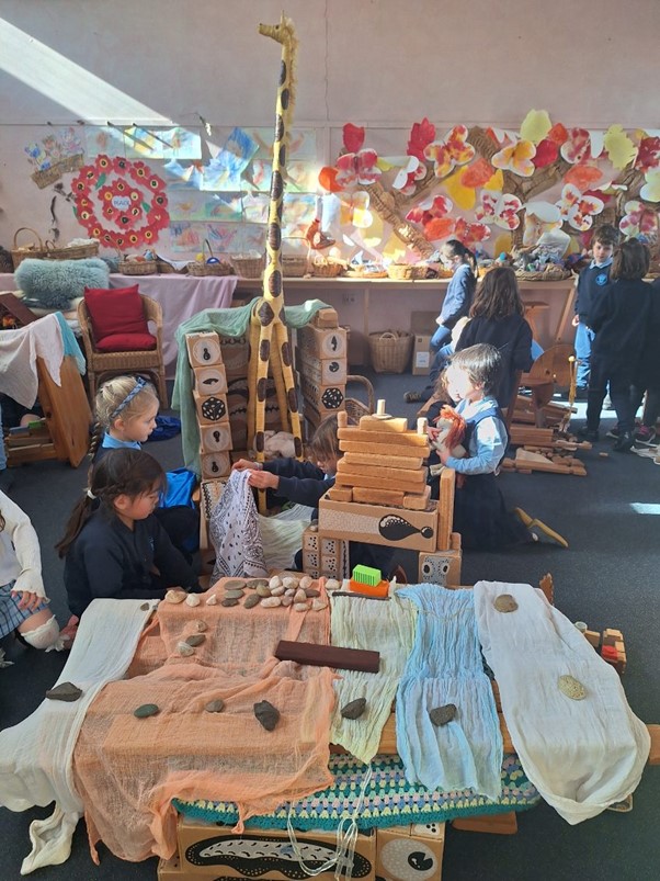 The children are familiarising themselves with partitioning and number sense. The are very engaged in the play based and hands on numeracy activities. They excitedly built a home for our large giraffe and one for our tiny mouse exploring the concepts of big and small.