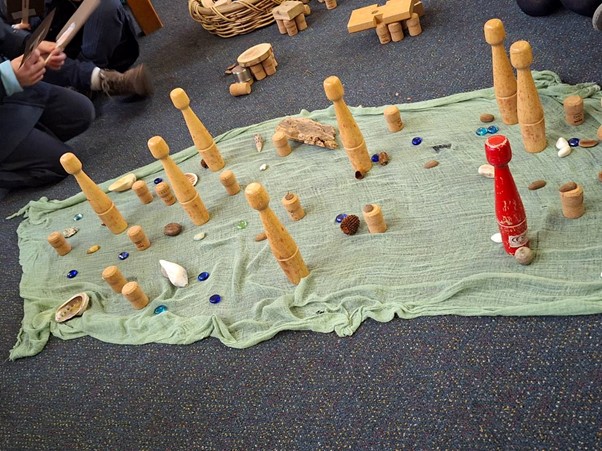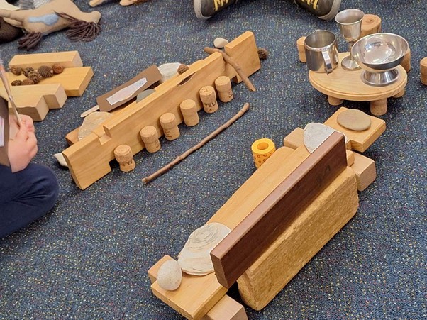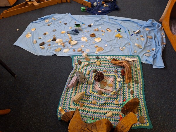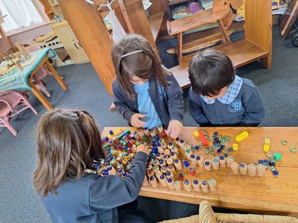 The children loved selecting, organising and counting objects from around the room to create patterns. They enjoyed our game in which they first worked out how many children are at school. Then they moved around and when the music stopped, they created two groups, and in this way, they worked out different combinations to create a specific number.