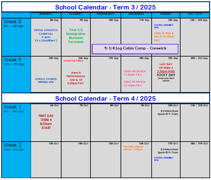 We look forward to organising more exciting events for the students and families to build our school community throughout Term 4.
