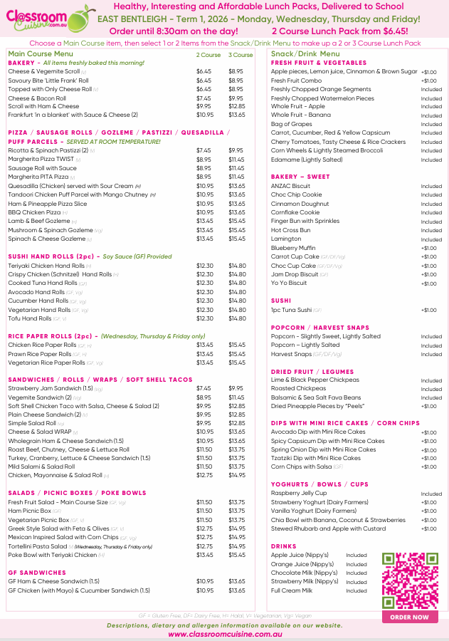 Term 1 2026 menu